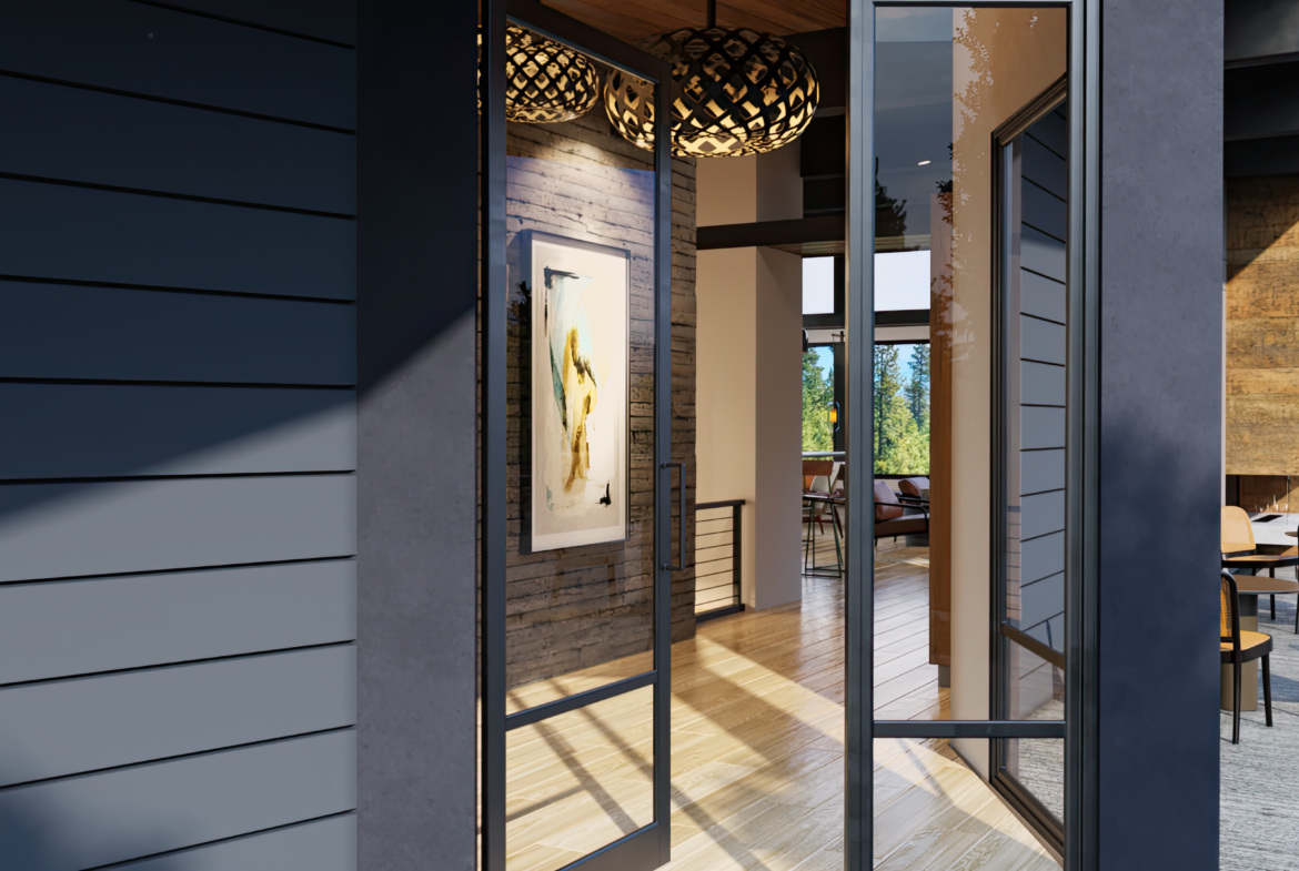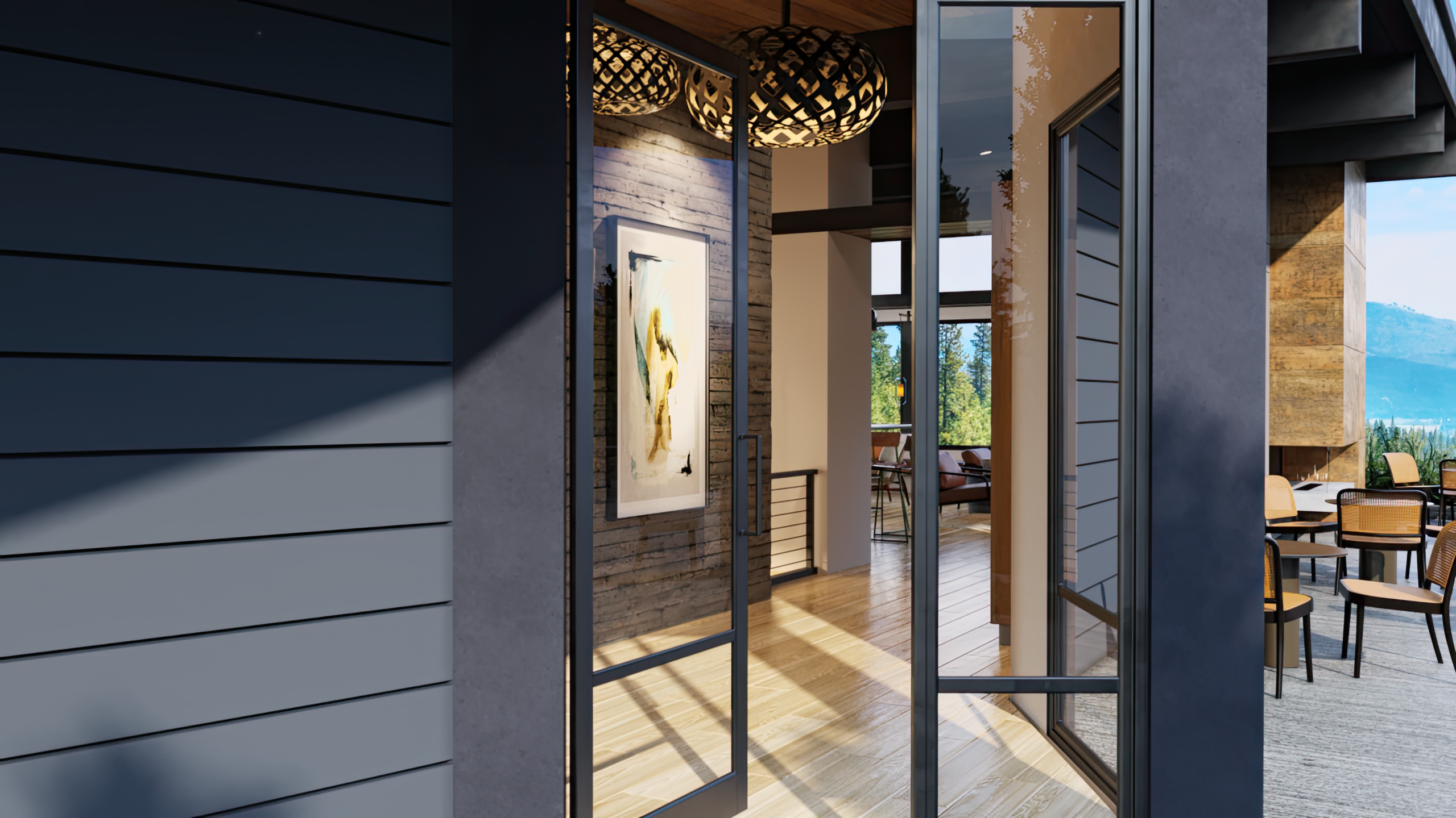The Navigator is a spacious contemporary living set in a breathtaking mountain setting. Expansive windows throughout the home seamlessly bring the outdoors in, providing stunning vistas and abundant natural light. With a vaulted great room ceiling and an open concept floorplan, this home is designed to maximize comfort and flow. The primary bedroom on the main floor offers convenience, while the covered deck and covered porch provide perfect spaces to enjoy the peaceful surroundings.